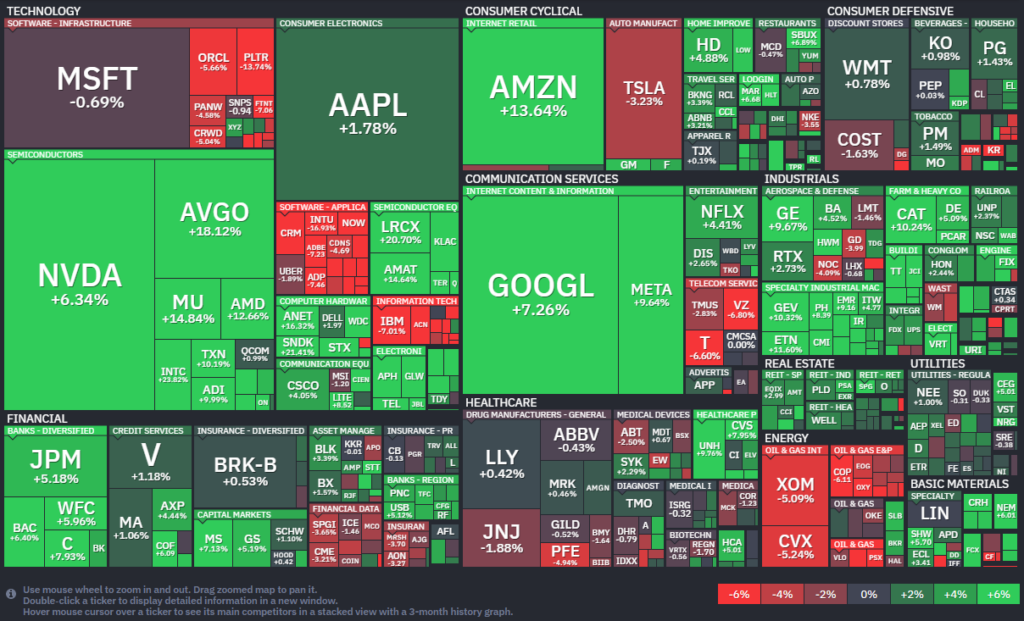 El Nasdaq lideró con un alza cercana al 4%, extendiendo su racha positiva.