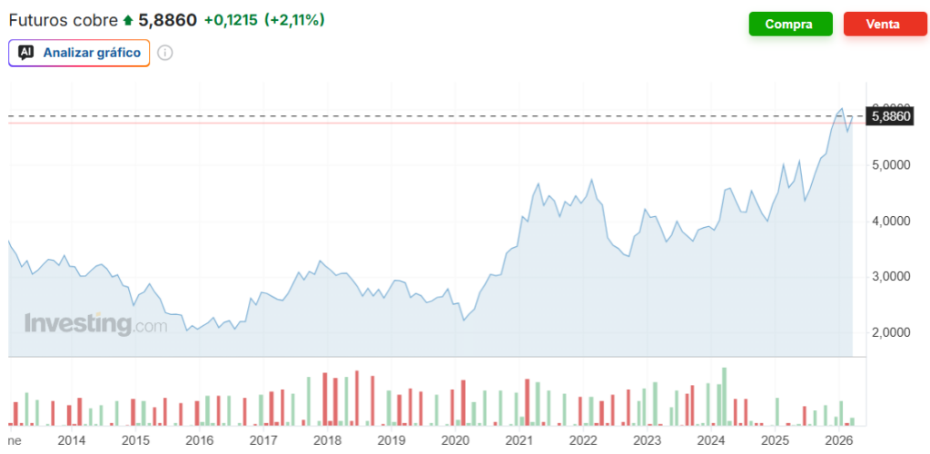 Por su lado, el cobre alcanzó su nivel más alto en más de 4 semanas, mientras los inversionistas sopesan los indicios de una mejora de la demanda en China, el principal consumidor mundial de metales. El metal rojo cotiza hoy a US$5.88.