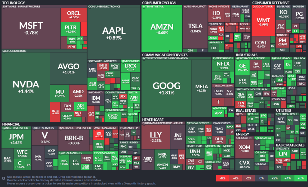 Por su lado, NVIDIA y Meta subieron más de 1%, mientras AMD cayó 3%.
