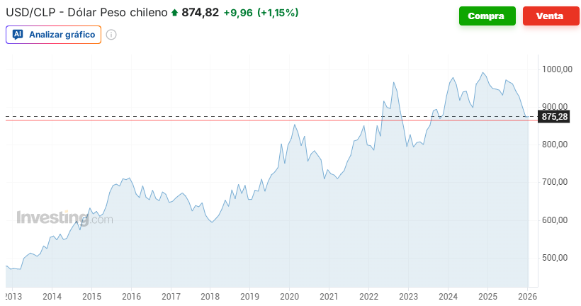 Dólar al alza en $874, mientras el Cobre sigue alto en niveles de US$6.06