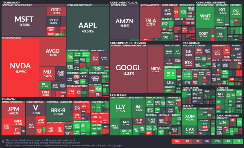 El Nasdaq pierde 3,58% y el Dow cede 0,2%, aunque mostró mayor resiliencia.